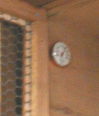 冬の暖房対策として、40ワットのペットヒーターを設置しておきました。糞がかからないように、板の下に設置し、事故のないようにしています。 又、温度計も設置して、巣箱の上の方の温度管理もバッチリです。 |