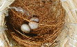 | 2001年9月28日 | 無精卵撤去 | ナッチ必死で抱卵するも、卵は孵らず。本日撤去しました。3個のうち1個は割れていました。あと2個についても、一応割ってみましたが、生命の兆候は見られませんでした。 また、がんばろうね。 代わりに、ベニスズメの卵を2個抱いてもらう事にしました。冷たくなっていた卵でしたので、可能性は低いかも知れませんが、がんばってみてね。 |