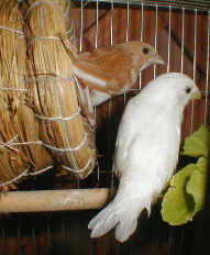 | 2001年10月3日 | チャッピー派遣 | 養療中とはいえ、1羽ケージというのはかわいそう・・今年孵ったチャッピー(茶十姉妹崩れメス)を壷巣とセットでシロのケージに入れてやりました。シロはマイペースで落ち着いたものですが、チャッピーは環境の変化に対応しにくいらしく、落ち着きがありません。玄関には、メジロのチッチがいます。チャッピーがあまりバタバタするので、居心地が悪そうです。慣れるまでの心棒だ(-_-;) |