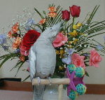 | 2006年4月21日 | 暖かくなったからか、良く飛ぶようになった。 そろそろ羽根でも切るかと思いきや、羽根を触るだけで思いっきり嫌がる始末。 調子付いてケージにも帰るそぶりを見せないので、背中を持って保定しようと思ったら少し下のほうを捕まえてしまった、まあそのまま掴んでケージまで運んだ。 ギーギーと、思いっきり怒らせてしまった。 しばらく興奮状態であった。嫌われた? |