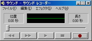 後は、どうファイルに取り込むかです。@Windowsマシンでは、必ずサウンドレコーダーというソフトが付いていますので、スタートボタンをクリックしてプログラム⇒アクセサリー⇒エンターテイメント⇒サウンドレコーダーへと進みこのソフトを起動させます。 Aパソコン本体のマイク端子と、録音機器のイヤホン端子とを繋いでパソコン側で録音すれば“wavファイル”として録音保存されます。 ※特別なソフトは必要ありません。細かい操作方法は書きませんが、ヘルプを参考にしながら何度か試行錯誤するとすぐに扱えるようになります。 |