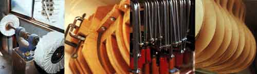まず木をそれぞれのパーツ型に切リ自然乾燥させる。自然乾燥は大体10〜20年。どんなに小さなパーツでも、木の個性を生かすためにはこの長い年月が必要なのだ。次に乾燥した木を重さ・厚さ・弾力を細かく分析して再び切つたり削ったりする。単純な行程だからこそ、精神的なものが影響する。無意識にイメージしながら手は潜在的に動いていく…まさに職人仕事の極み。カンナの刃は硬すぎると欠けやすくヒビ割れしやすいが良く切れる。そういう刃金の欠けたり割れたりしたところを旨く研いでいくと、20〜30年は使える。道具もいい職人にかかれば長い命を与えられ生かされていく。