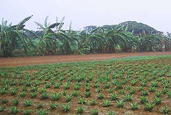 | レンブとバナナ | パイナップル畑と後方はバナナ | |