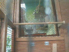 一応、隣の巣箱との連絡通路は作りました。 将来的には、十姉妹の巣箱と繋げる考えですが、当面は閉鎖です。カギを外して上に扉を開けば簡単に繋がる構造です。 |