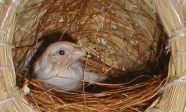 | 2001年9月8日 | 虚弱雛のまま巣立ち | 先週報告した雛たちは、もう壷巣にはいません。何かの拍子に巣立ちしたようで、ヒーターの上にしがみついていました。巣立ちには、まだ少し早かったのか足が悪いのか・・見ての通りの状態です。 また、他の巣には卵もありました。まだ検卵はしていませんが、ゆっくり様子を見ます。先週報告した卵のあった巣には、もう卵はありません。足に引っ掛けて下に落としてしまったようです。 |