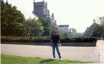 | 1636年、メイフラワー号の清教徒たちが上陸し てからわずか17年後に創立されたアメリカ最古 の大学です。もともとは優秀な牧師を教育する場 だったようですが、牧師だったジョン・ハーバード が遺産の一部として300冊の蔵書を寄贈したと ころからこの名前があるのだそうです。キャンパ スとよばれずにハーバード・ヤードと呼ばれる広 大な敷地の構内です。 |